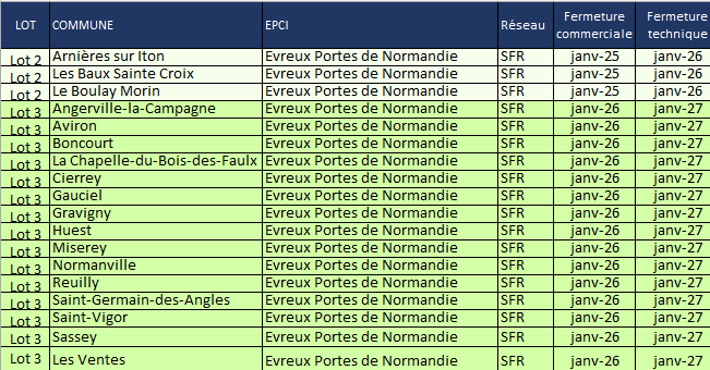 Les communes euroises concernées par l’arrêt du réseau cuivre sur les 5 premiers lots
